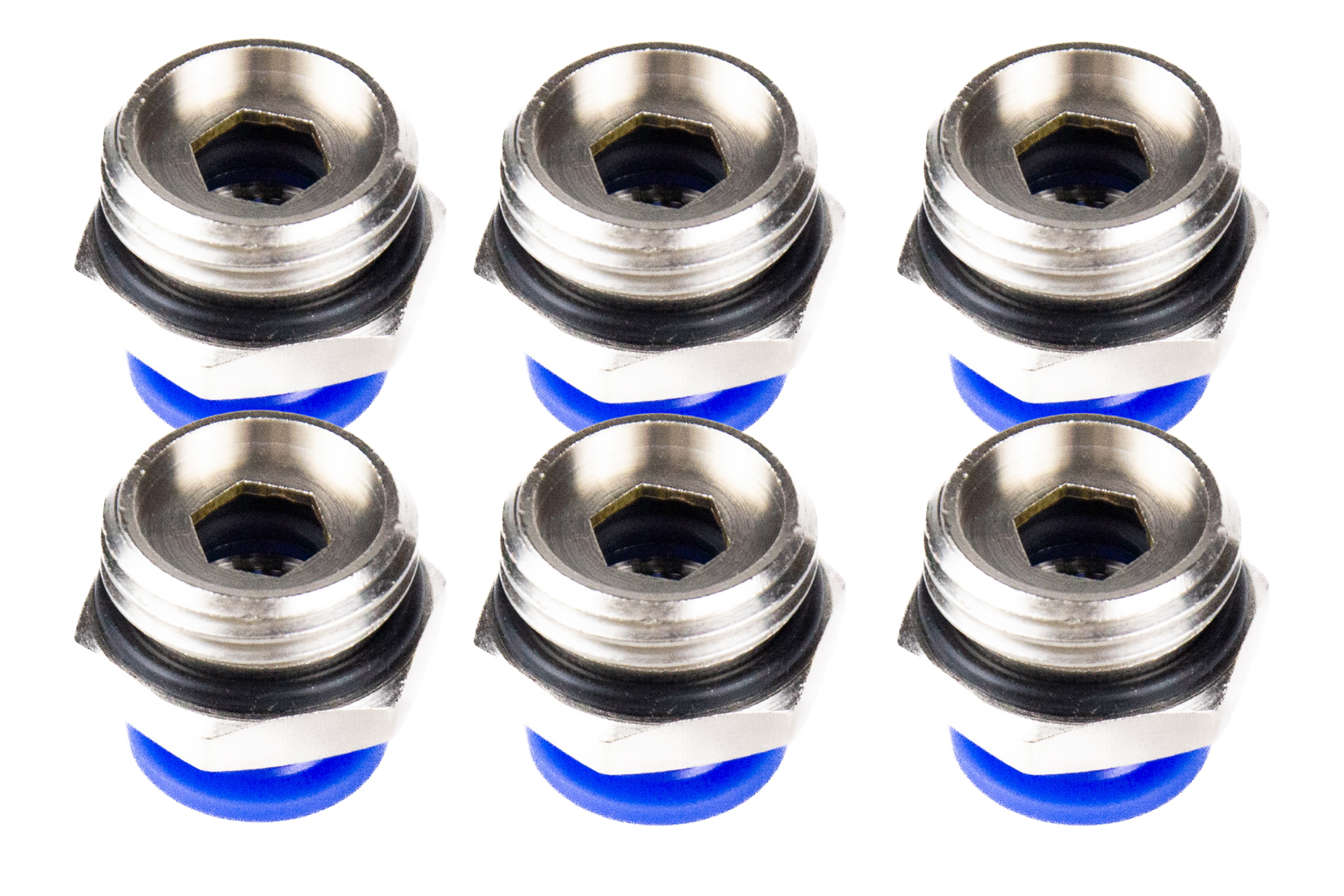 Kit conexão reta rosca macho com 6 peças são rápidas para aplicação pneumática, água e de vácuo. São indicadas para temperaturas até 60ºC e pressão máxima de 10 bar. Recomendado para rosca de 1/4" para tubos de diâmetro de 4mm. Fabricado em latão niquelado para maior durabilidade.